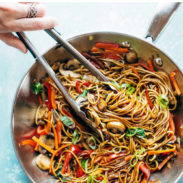I love this recipe as a base for vegetable lo mein, but it would be easy enough to add some protein like chicken or beef (or maybe even shrimp!?).