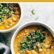 OMG, Lindsay! You’ve combined basically all of my favorite ingredients into one dish. It’s like you and I have the same minds… zucchini, almond milk, potatoes, corn… goodness! I’m actually obsessed.😍😍